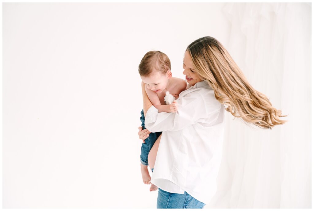 You don’t need to scout locations, worry about weather, or coordinate outfits for the whole family unless you want to. My natural-light and studio light space offers a clean, minimalism that allows the focus to stay exactly where it belongs, on connection, emotion, and motherhood.